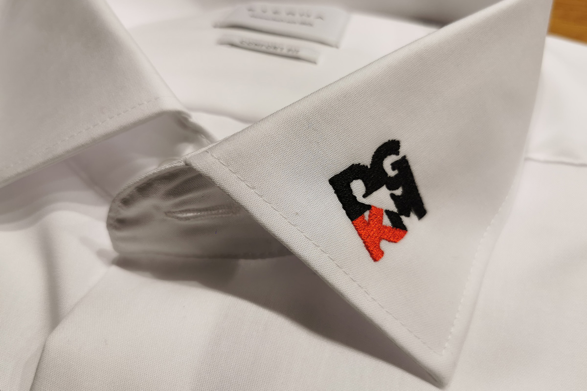 Logostickerei auf vom Kunden bereitgestellten Hemden für die Deutsche Gesellschaft für Katastrophenmedizin e. V.